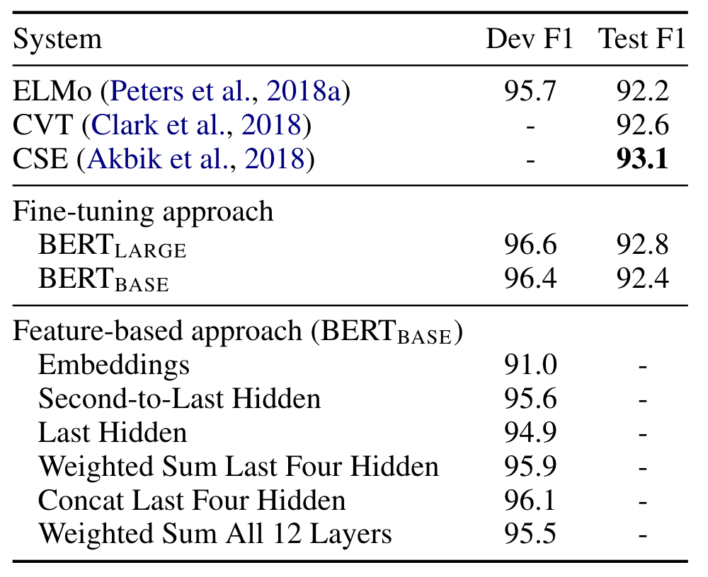 - BERT는 fine-tuning 및 feature-based approach 모두에서 효과적임