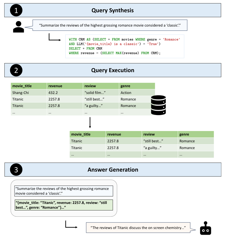 - LM의 세계 지식 활용해 각 영화가 ‘고전’인지를 식별함 (기존 Text2SQL, RAG에서는 어려웠던 작업)